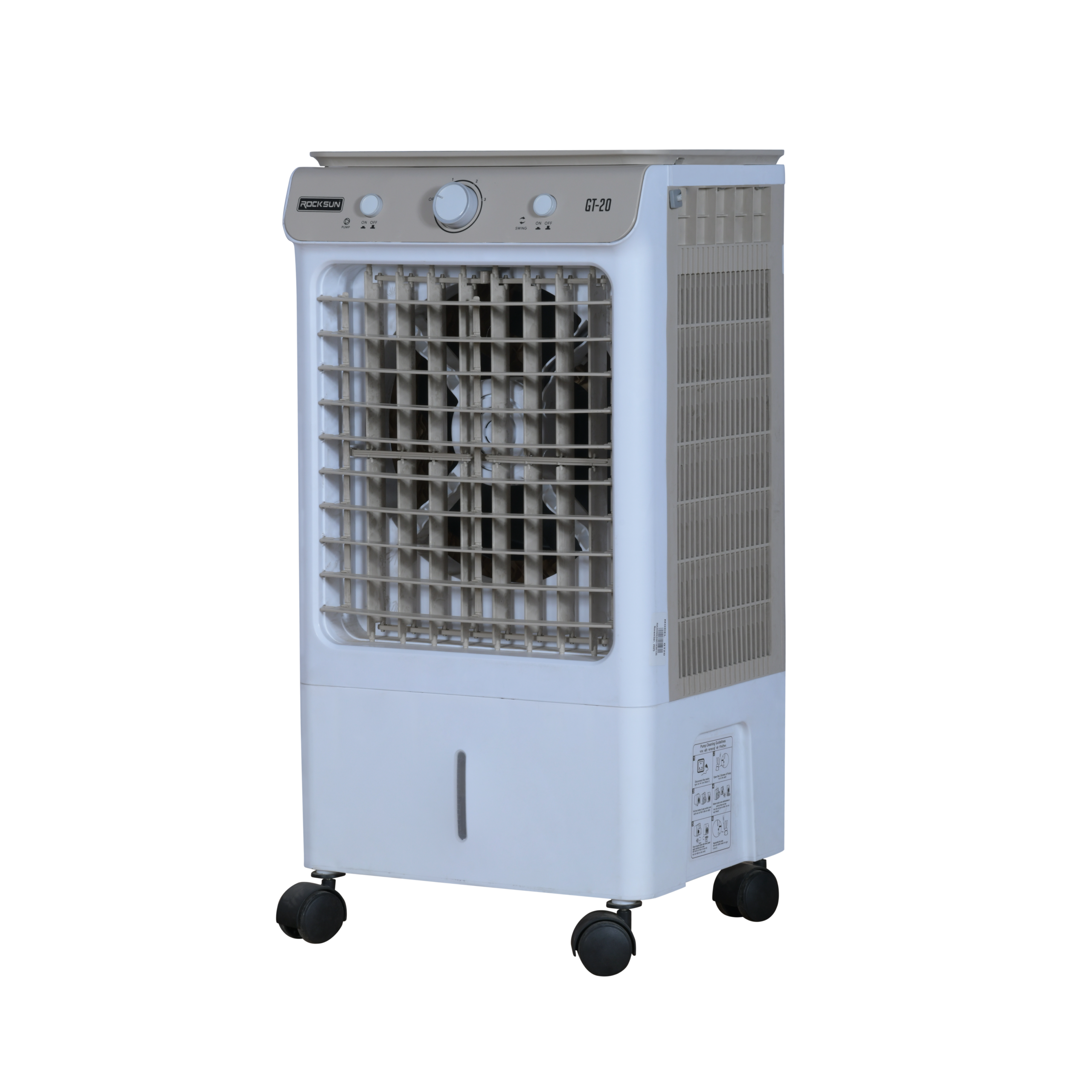 The GT 20 Air Cooler is a compact, energy-efficient plastic air cooler designed for small rooms, bedrooms, and personal cooling needs. With a durable body, honeycomb cooling pads, and low power consumption, GT 20 delivers reliable cooling while keeping electricity costs minimal—making it ideal for daily household use.